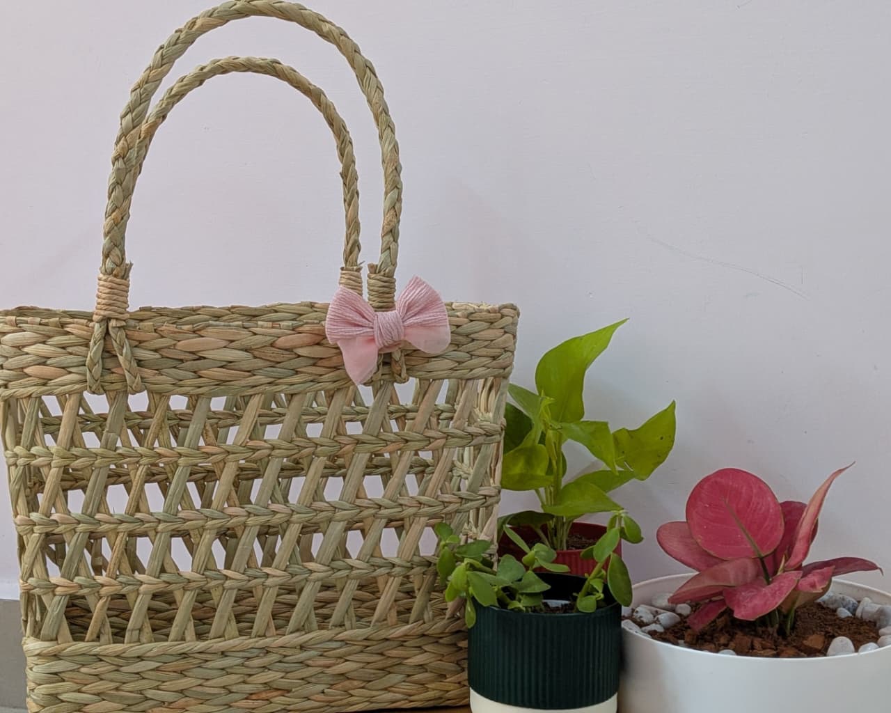 Compact handwoven Kauna bags for small storage and decor.